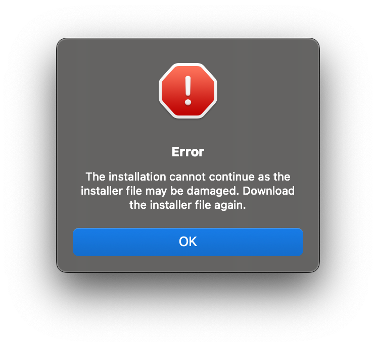 Chạy cài theo thứ tự 1 – 3. Đương nhiên máy phải đã tắt Gatekeeper. Nếu chạy file cài gặp lỗi như hình sau